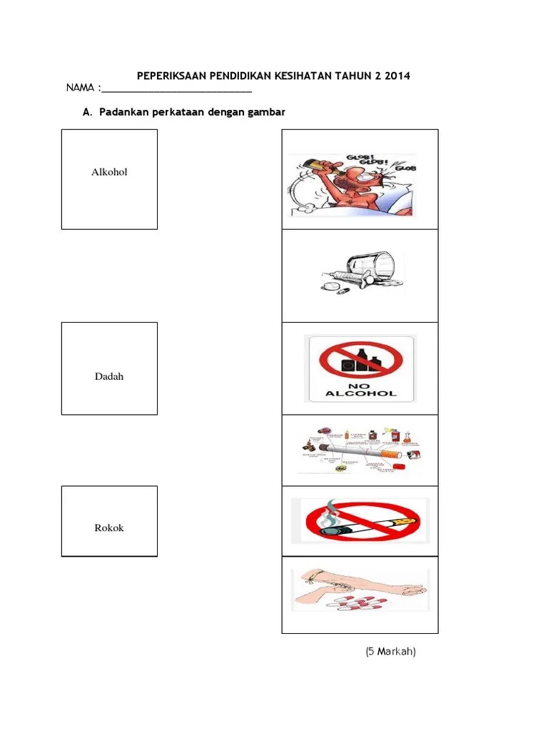 Soalan pendidikan kesihatan tahun 5 persoalan q . Merokok membahayakan kesihatan diri dan persekitaran. 15 minit pertama semasa waktu pendidikan kesihatan atau mata pelajaran yang sesuai .